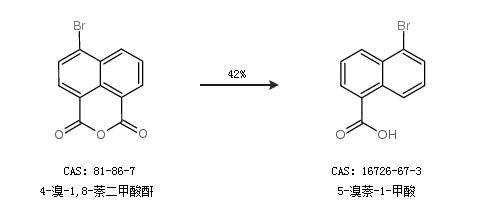 2.通过4-溴-1,8-萘二甲酸酐合成5-溴萘-1-甲酸,收率约42%;