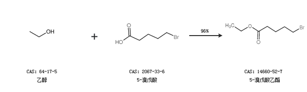 1.通过乙醇和5-溴戊酸合成5-溴戊酸乙酯,收率约96%;