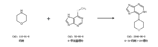 1.通过吗啉和6-甲巯基嘌呤合成6-(4-吗啉)-1H-嘌呤