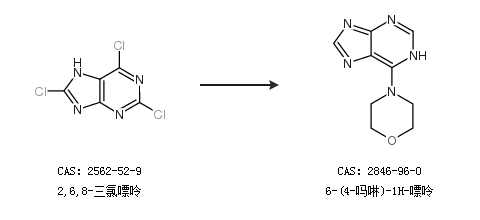 2.通过2,6,8-三氯嘌呤合成6-(4-吗啉)-1H-嘌呤