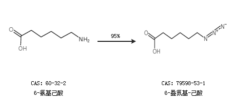 2.通过6-氨基己酸合成6-叠氮基-己酸,收率约95%;