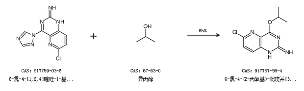 1.通过6-氯-4-[1,2,4]噻唑-1-基-吡啶并[3,2-d]嘧啶-2-基-胺和异丙醇合成6-氯-4-(2-丙氧基)-吡啶并[3,2-d]嘧啶-2-胺,收率约65%;