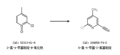 1.通过2-氯-4-甲基吡啶-N-氧化物合成6-氯-4-甲基-2-氰基吡啶