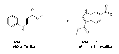 1.通过吲哚-3-甲酸甲酯合成6-硝基-1H-吲哚-3-羧酸甲酯