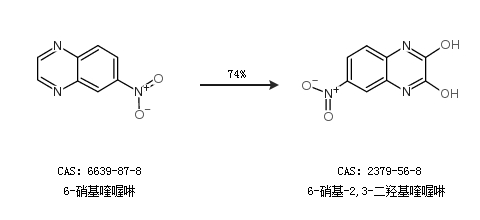 1.通过6-硝基喹喔啉合成6-硝基-2,3-二羟基喹喔啉,收率约74%;