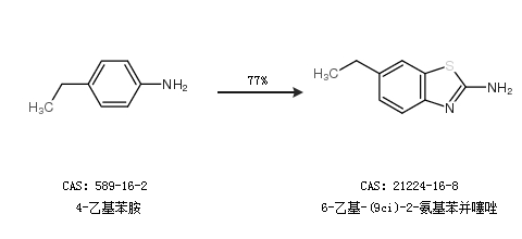 2.通过4-乙基苯胺合成6-乙基-(9ci)-2-氨基苯并噻唑,收率约77%;