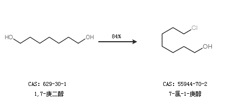 1.通过1,7-庚二醇合成7-氯-1-庚醇,收率约84%;