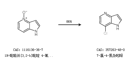 2.通过1H-吡咯并[3,2-b]吡啶 4-氧化物合成7-氯-4-氮杂吲哚,收率约86%;