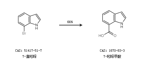 1.通过7-溴吲哚合成7-吲哚甲酸,收率约66%;