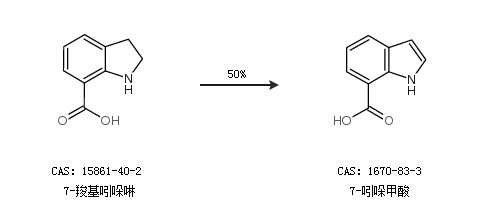 2.通过7-羧基吲哚啉合成7-吲哚甲酸,收率约50%;