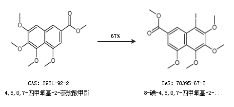 1.通过4,5,6,7-四甲氧基-2-萘羧酸甲酯合成8-碘-4,5,6,7-四甲氧基-2-萘羧酸甲酯,收率约67%;