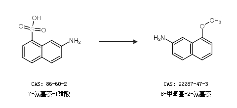 2.通过7-氨基萘-1磺酸合成8-甲氧基-2-氨基萘