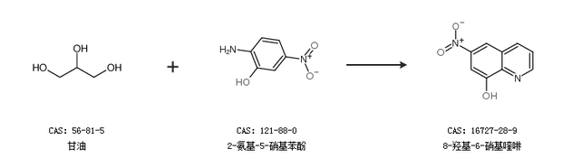 1.通过甘油和2-氨基-5-硝基苯酚合成8-羟基-6-硝基喹啉