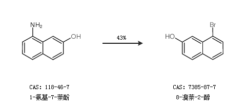 1.通过1-氨基-7-萘酚合成8-溴萘-2-醇,收率约43%;