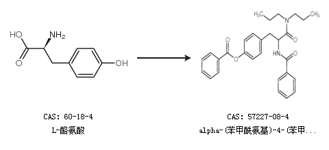 1.通过L-酪氨酸合成alpha-(苯甲酰氨基)-4-(苯甲酰氧基)-N,N-二丙基苯丙酰胺