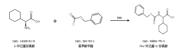 1.通过L-环己基甘氨酸和氯甲酸苄酯合成Cbz-环己基-L-甘氨酸,收率约89%;