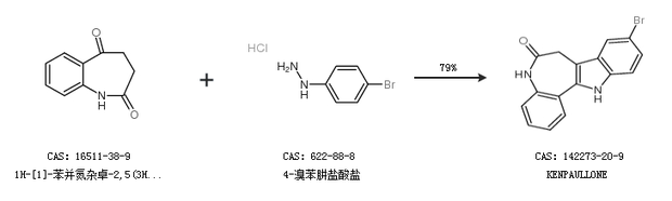 2.通过1H-[1]-苯并氮杂卓-2,5(3H,4H)-二酮和4-溴苯肼盐酸盐合成KENPAULLONE,收率约79%;