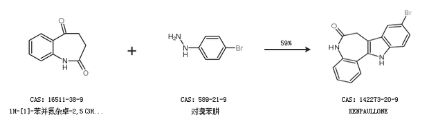 1.通过1H-[1]-苯并氮杂卓-2,5(3H,4H)-二酮和对溴苯肼合成KENPAULLONE,收率约59%;