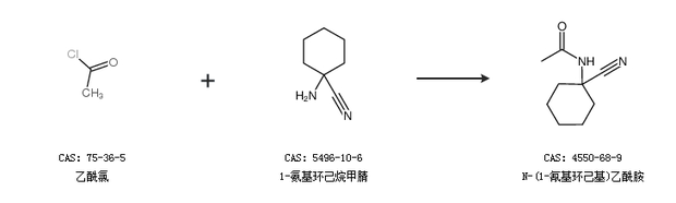 1.通过乙酰氯和1-氨基环己烷甲腈合成N-(1-氰基环己基)乙酰胺