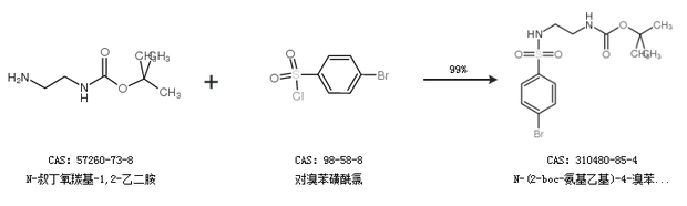 1.通过N-叔丁氧羰基-1,2-乙二胺和对溴苯磺酰氯合成N-(2-boc-氨基乙基)-4-溴苯磺酰胺,收率约99%;