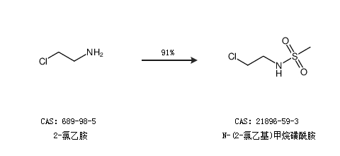 2.通过2-氯乙胺合成N-(2-氯乙基)甲烷磺酰胺,收率约91%;