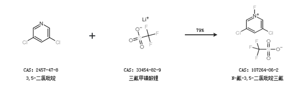 1.通过3,5-二氯吡啶和三氟甲磺酸锂合成N-氟-3,5-二氯吡啶三氟,收率约79%;