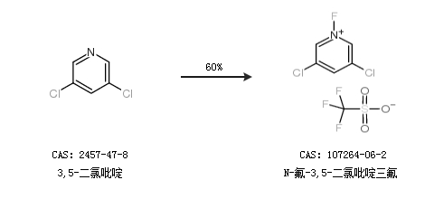 2.通过3,5-二氯吡啶合成N-氟-3,5-二氯吡啶三氟,收率约60%;