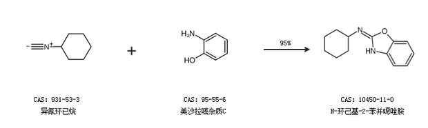 2.通过异氰环已烷和美沙拉嗪杂质C合成N-环己基-2-苯并噁唑胺,收率约95%;