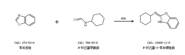 1.通过苯并恶唑和N-环己基甲酰胺合成N-环己基-2-苯并噁唑胺,收率约68%;