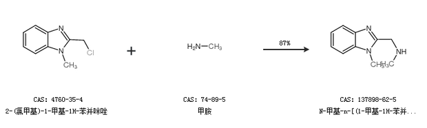 1.通过2-(氯甲基)-1-甲基-1H-苯并咪唑和甲胺合成N-甲基-n-[(1-甲基-1H-苯并咪唑-2-基)甲基]胺盐酸盐,收率约87%;