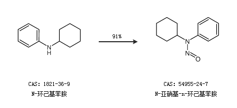 1.通过N-环己基苯胺合成N-亚硝基-n-环己基苯胺,收率约91%;