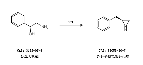 1.通过L-苯丙氨醇合成S-2-苄基氮杂环丙烷,收率约85%;