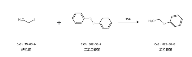 2.通过碘乙烷和二苯二硫醚合成苯乙硫醚,收率约75%;