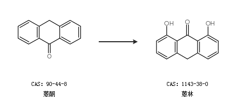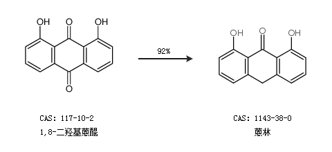 1.通过1,8-二羟基蒽醌合成蒽林,收率约92%;