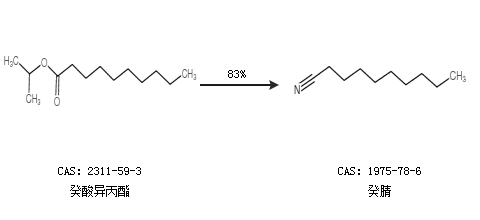 2.通过癸酸异丙酯合成癸腈,收率约83%;