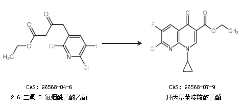2.通过2,6-二氯-5-氟烟酰乙酸乙酯合成环丙基萘啶羧酸乙酯