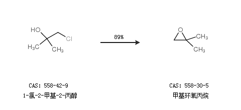 2.通过1-氯-2-甲基-2-丙醇合成甲基环氧丙烷,收率约89%;