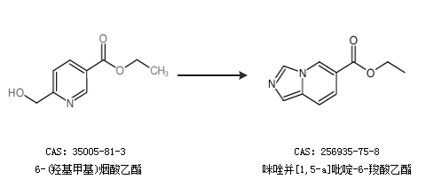 2.通过6-(羟基甲基)烟酸乙酯合成咪唑并[1,5-a]吡啶-6-羧酸乙酯