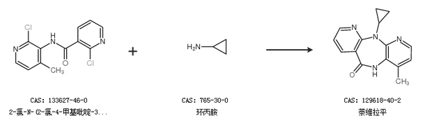 2.通过2-氯-N-(2-氯-4-甲基吡啶-3-基)烟酰胺和环丙胺合成萘维拉平