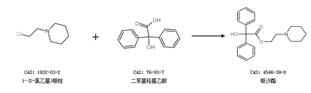 2.通过1-(2-氯乙基)哌啶和二苯基羟基乙酸合成哌沙酯