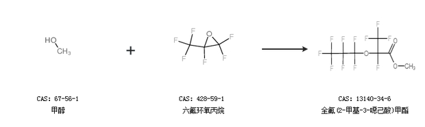 1.通过甲醇和六氟环氧丙烷合成全氟(2-甲基-3-噁己酸)甲酯