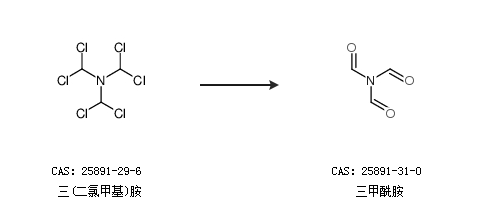 1.通过三(二氯甲基)胺合成三甲酰胺