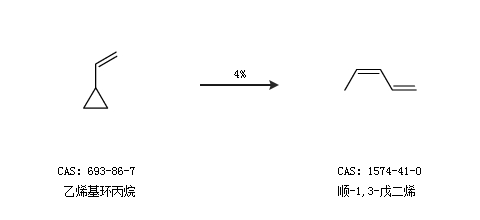 2.通过乙烯基环丙烷合成顺-1,3-戊二烯,收率约4%;