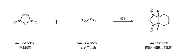 2.通过马来酸酐和1,3-丁二烯合成四氢化邻苯二甲酸酐,收率约80%;