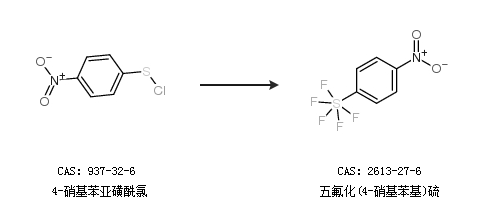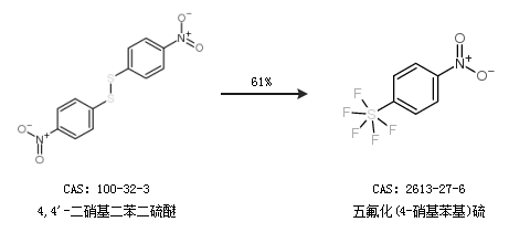 1.通过4,4''-二硝基二苯二硫醚合成五氟化(4-硝基苯基)硫,收率约61%;