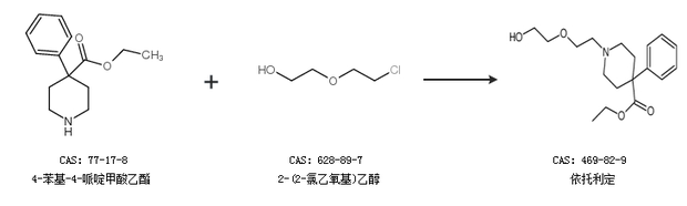 1.通过4-苯基-4-哌啶甲酸乙酯和2-(2-氯乙氧基)乙醇合成依托利定