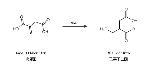 1.通过衣康酸合成乙基丁二酸,收率约96%;