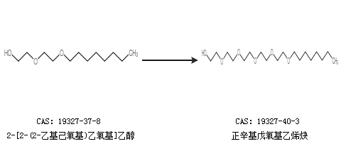 1.通过环氧乙烷和正辛醇合成正辛基戊氧基乙烯炔