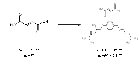 中文别名 1-[4-[[2-(1-甲基乙氧基)乙氧基]甲基]-苯氧基]-3-[(1-甲基乙基)氨基]-2-丙醇富马酸盐;比索洛尔富马酸;1-4-2-(1-甲基乙氧基)乙氧基甲基-苯氧基-3-(1-甲基乙基)氨基-2-丙醇富马酸盐;比索洛尔富马酸盐;