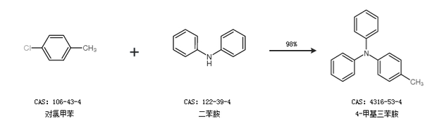 1.通过对氯甲苯和二苯胺合成4-甲基三苯胺,收率约98%;